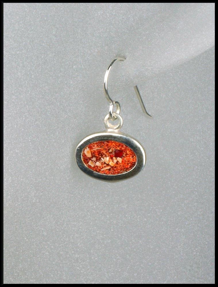 These Sterling Silver and Terrazzo Earrings by Fiddlehead Studio offer a unique way to add color to your earring wardrobe! With their graceful shape and gorgeous bright but neutral color, you will wear these earrings all the time! These have a graceful horizontal oval shape and an inlay look to them. Earring Girl loves the texture and sheen of Fiddlehead Studios' Terrazzo, read all about this unique material and labor intensive fabrication process below!